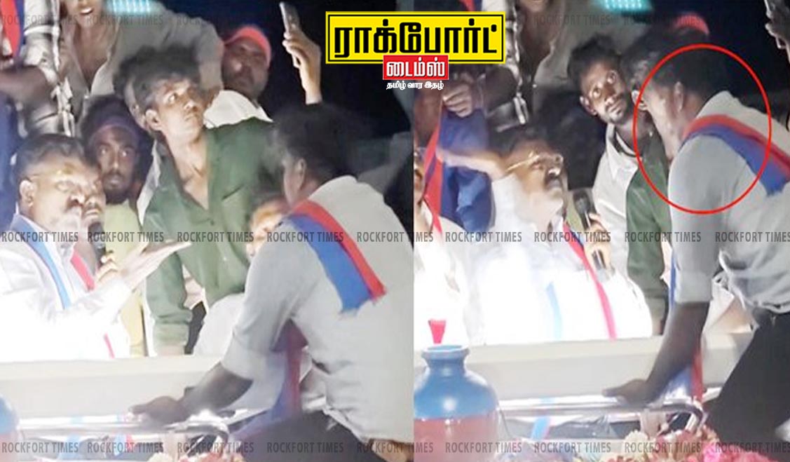 தேனி மாவட்டம், பெரியகுளம் தொகுதியில் நடைபெற்ற தேர்தல் பிரச்சாரத்தின் போது, விசிக தலைவர் திருமாவளவன் அக்கட்சியின் வேட்பாளர் சக்திவேலை ஆதரித்து தீவிர பிரச்சாரம் மேற்கொண்டார். அப்போது பெருமளவிலான தொண்டர்கள் திரண்டிருந்த நிலையில், அவருடைய கட்சியினரைச் சேர்ந்த சிலர் திடீரென பிரச்சார வாகனத்தின் மீது ஏறி நின்றதால், அங்கு குழப்பமான நிலை உருவானது. பலமுறை எச்சரிக்கப்பட்டபோதும், அவர்கள் தொடர்ந்து வாகனத்தில் ஏறி இடையூறு செய்ததாக கூறப்படுகிறது. இதனால் ஆத்திரமடைந்த திருமாவளவன், வாகனத்தில் ஏறி தொந்தரவு செய்த ஒரு தொண்டரை கன்னத்தில் அறைந்ததாக கூறப்படுகிறது. இந்த சம்பவத்தால் அங்கு சிறிது நேரம் பரபரப்பு ஏற்பட்டது.