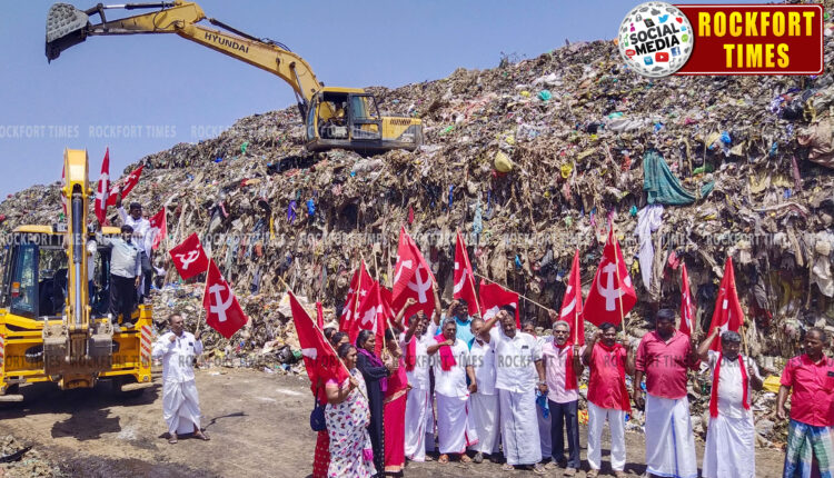 திருச்சி, அரியமங்கலம் குப்பை கிடங்கை அகற்றிவிட்டு அடுக்குமாடி குடியிருப்பு கட்ட கோரி கம்யூனிஸ்ட் கட்சியினர் ஆர்ப்பாட்டம்…!