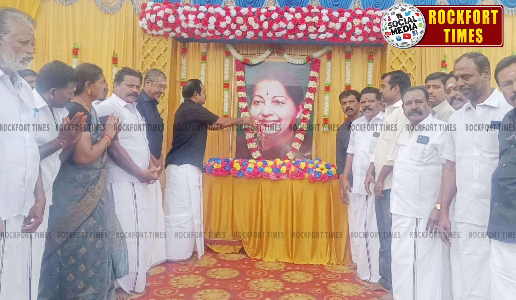 ஜெயலலிதா நினைவு நாளையொட்டி அவரது திருவுருவப் படத்திற்கு திருச்சி தெற்கு மாவட்ட அதிமுக செயலாளர் ப.குமார் மலர்தூவி மரியாதை…!