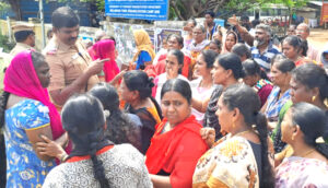 இலங்கைத் தமிழர்கள் மறுவாழ்வு முகாம் திருச்சி, கொட்டப்பட்டு பகுதியில் உள்ளது. இங்கு 400-க்கும் மேற்பட்ட குடும்பத்தினர் வசித்து வருகின்றனர். இந்நிலையில், 50-க்கும் மேற்பட்ட பெண்கள் இன்று(21-01-2025) திடீரென முகாம் முன்பு அமர்ந்து மறியல் போராட்டத்தில் ஈடுபட்டனர். தங்களுக்கு அடிப்படை வசதிகள் இல்லை, கழிவறை இல்லை, கழிவுநீர் செல்வதற்கு சாக்கடை வசதி இல்லை, சுத்தமான குடிநீர் இல்லை எனக்கூறி அவர்கள் இந்த போராட்டத்தில் ஈடுபட்டனர். இது குறித்து தகவல் அறிந்த அதிகாரிகள் மற்றும் போலீசார் அவர்களிடம் பேச்சுவார்த்தை நடத்தினர். இதில், உடன்பாடு ஏற்பட்டதை தொடர்ந்து போராட்டத்தை கைவிட்டு அனைவரும் முகாமிற்கு திரும்பினர்.