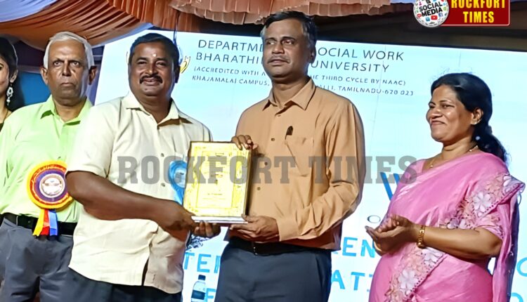 திருச்சி ஒயிட் ரோஸ் சமூக சேவை நிறுவனர் ப.சங்கருக்கு சிறந்த சமூக பணியாளர் விருது…! * பாரதிதாசன் பல்கலைக்கழக பதிவாளர் வழங்கினார்