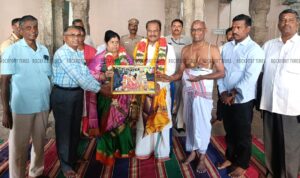 பூலோக வைகுண்டம் என்று அழைக்கப்படுவதும், 108 வைணவ திருத்தலங்களில் முதன்மையானதாக விளங்கும் ஸ்ரீரங்கம் அரங்கநாதர் சுவாமி கோவிலுக்கு திரிபுரா மாநில ஆளுநர் இந்திர சேனா ரெட்டி நல்லு தனது குடும்பத்தினருடன் இன்று(17-02-2025) வருகை தந்தார். அவருக்கு கோவில் நிர்வாகம் சார்பாக வரவேற்பு அளிக்கப்பட்டது. அதனைத்தொடர்ந்து கோவிலில் உள்ள கருடாழ்வார் சன்னதி, மூலவர் பெரிய பெருமாள் சன்னதி, தாயார் சன்னதி உள்ளிட்ட சன்னதிகளுக்கும் சென்று சுவாமி தரிசனம் செய்தார். பின்னர் கோவில் நிர்வாகம் சார்பாக அவருக்கு பெருமாள் புகைப்படம் மற்றும் பெருமாள் சந்தன அபய ஹஸ்தம் ஆகியவற்றை கோவில் இணை ஆணையர் மாரியப்பன், தலைமை அர்ச்சகர் சுந்தர் பட்டர், கண்காணிப்பாளர் வேல்முருகன் ஆகியோர் நினைவு பரிசாக வழங்கினர்.