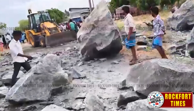 முசிறி அருகே பாறைகளை வெடி வைத்து தகர்த்தபோது விபரீதம்..!- அந்தரத்தில் பறந்து வந்து தார்சாலைகளை பதம் பார்த்த ராட்சத பாறைகள்…